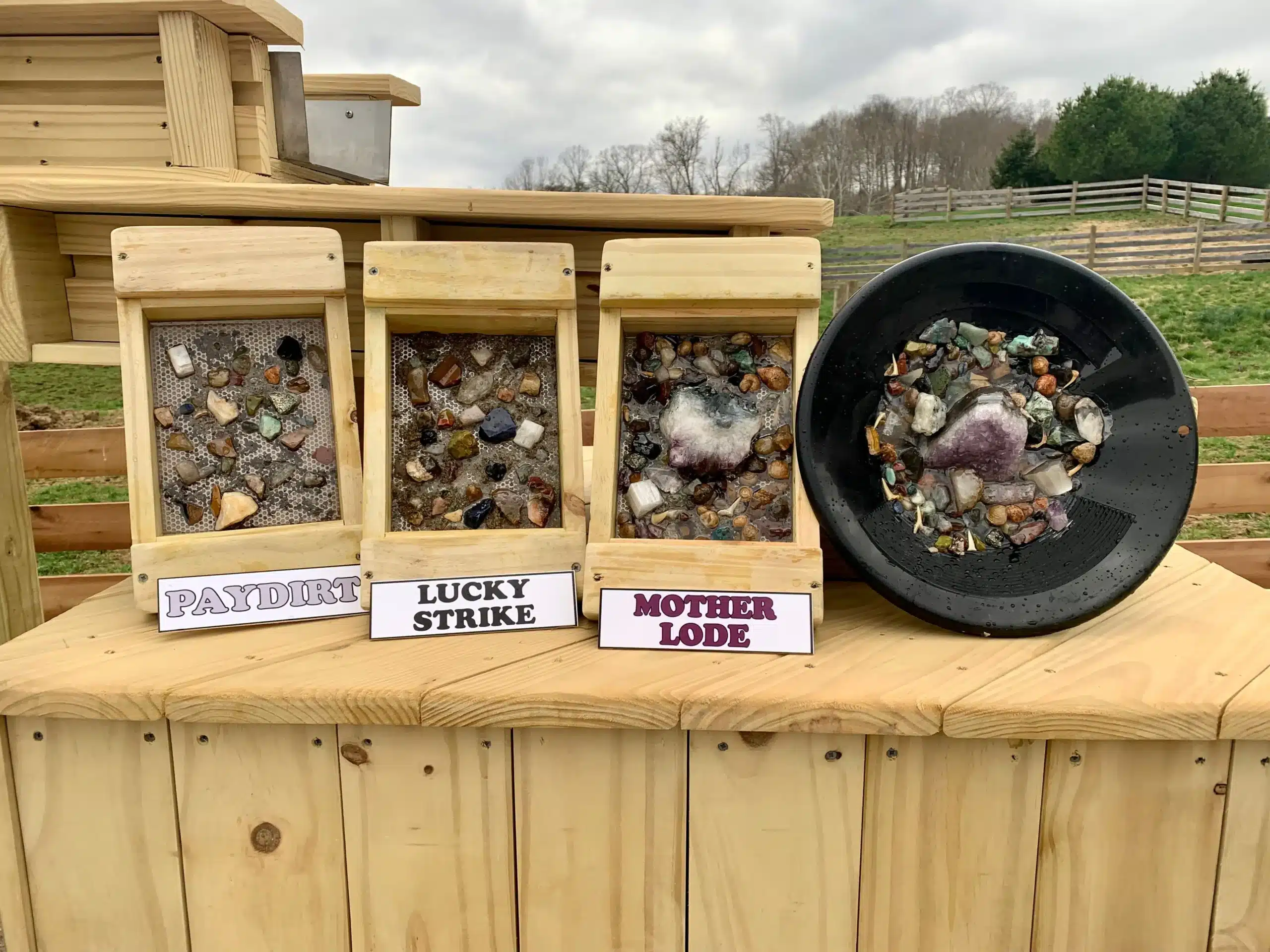 At Fox’s High Rock Farm, our gem mining experience is more than just a fun activity, it’s a journey of discovery. Join us as you sift through layers of history and earth, finding everything from sparkling gemstones to fascinating fossils. Our guided experience is designed to educate and entertain, making each dig a unique exploration of nature’s wonders. Whether you’re a seasoned rockhound or a curious first-timer, you’re in for a memorable adventure that combines learning with the thrill of the hunt.